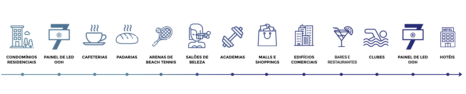 A GM7 está presente nos melhores e mais estratégicos pontos de mídia, acompanhando e impactando os consumidores na trajetória do dia. Líder na Região Metropolitana de Campinas (RMC) com sólida participação nos principais estabelecimentos frequentados pelas classes A e B.